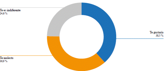 Al 38,5 %> de los encuestados les habría gustado recibir un mayor número de turistas, al 36,9 % eso les habría molestado y al 24,6 % les era indiferente (Figura 12). En relación con el porqué de sus respuestas, quienes lo veían como favorable manifestaron que conllevaría trabajo para los vecinos y beneficios para los emprendimientos locales, en particular, para aquellos vinculados al turismo. Además, este dinamismo revitalizaría el lugar y ayudaría a la difusión y visibilización de las problemáticas del barrio.