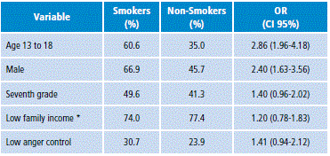 Since few studies have explored this association, this research is a contribution to the knowledge of the relationship between anger control and smoking in adolescents. However, limitations included the participation of students from public educational institutions, including only sixth and seventh grade students, and a cohort composed only by young adolescents.