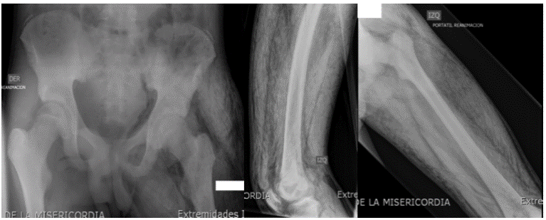 X-rays of the abdomen and left lower limbs showed subcutaneous emphysema in the thigh, leg and pelvis (Figure 1); a deep vein thrombosis with signs of gangrene and compartment syndrome was determined, so a fasciotomy was conducted as a vital urgency.