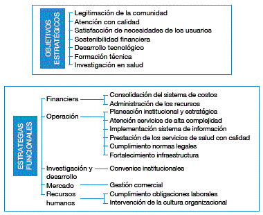 Materials and methods: The theoretical framework of strategic management was analyzed and some particular components of hospital management were studied; based on these criteria, the strategic management process in three high complexity hospitals of Bogotá, D.C. was examined and a profile of both the objectives and the functional strategies for the hospital was proposed.