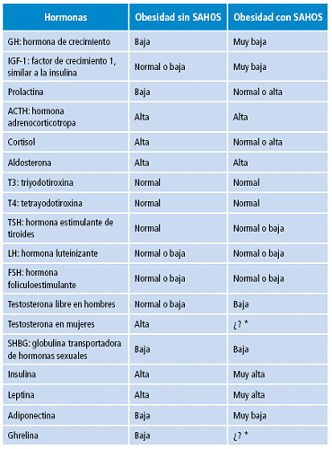 La obesidad, por si misma, tiene alteraciones hormonales y cuando, además, se asocia a SAHOS puede generar un comportamiento hormonal diferente (Tabla 1) 7.