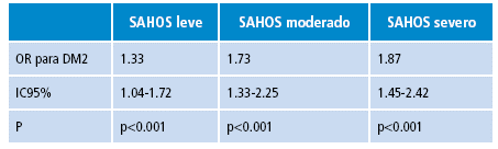 Pacientes con SAHOS tienen mayor prevalencia de DM2 8-10 y su riesgo se incrementa en la medida en que aumenta la severidad del SAHOS (Tabla 2):