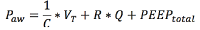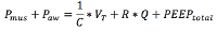 Donde Paw es la presión medida en boca por el ventilador y Peq corresponde a la suma de presiones en la ecuación 2.