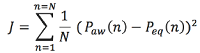 La ecuación 4 es altamente sensible a la morfología de la curva de flujo y a la creación de una diferencia apreciable entre PIP y Pplat lo cual se logra con facilidad en ventilación controlada, pero fue muy difícil de obtener en ventilación espontánea porque los voluntarios realizaron ventilaciones con flujos con morfología diferente en cada evento. Por estas razones, se propuso un algoritmo de optimización basado en la ecuación 2, donde la función de coste a minimizar se dio por la siguiente expresión: