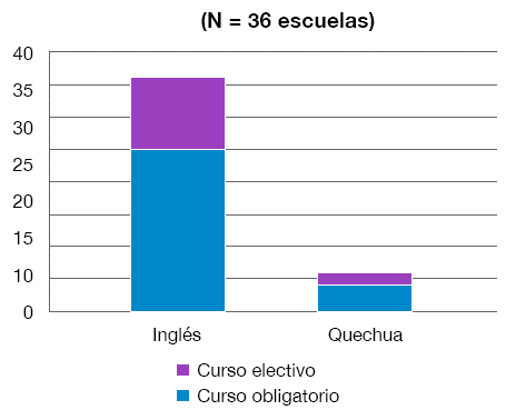 Conclusión.: Se encontró que pocas escuelas tenían al menos un curso de quechua, aunque todas ofrecen cursos de inglés.