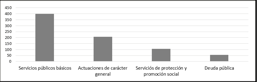 En este tramo de población el área de gasto al que se dedicaron mayores recursos fue el de la prestación de servicios públicos básicos con un 40,36 % del total, seguidas de las actuaciones de carácter general que supusieron un 25,42 %, mientras que a las actuaciones de protección social destinaron el 9,40 % del total.