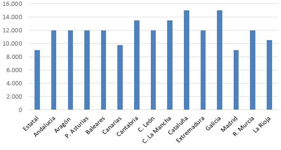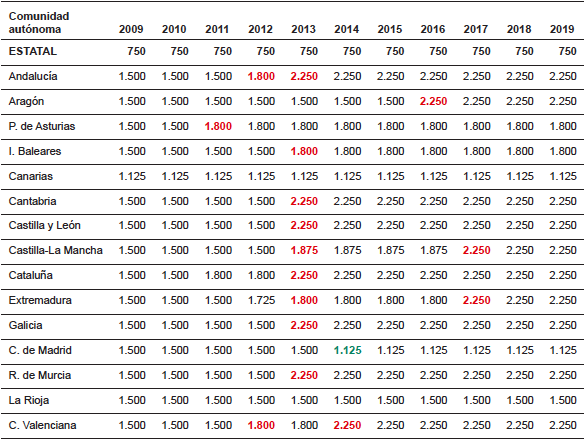 Hay que resaltar el hecho de que una variación porcentual de un punto, signifique un aumento a pagar en la cuota tributaria de 1.500 €, lo que supone un esfuerzo considerable para un sujeto pasivo con una renta media/baja. Respecto a esta circunstancia, hay que destacar el hecho de que en el ejercicio 2019 solamente una Comunidad Autónoma, en este caso Cantabria, rebaja su tipo impositivo en un punto porcentual.