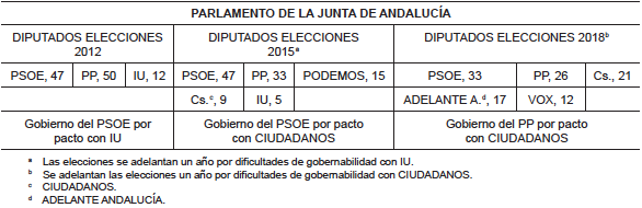 De acuerdo con las tablas del Anexo I, en la Comunidad de Andalucía en las elecciones de marzo de 2012 el PSOE, pactando con IU, consigue continuar en el gobierno. En ese mismo año y el siguiente (etapa post-electoral) van a subir el IAJD hasta alcanzar el 1,50 % en 2013. Para la siguiente convocatoria de elecciones en 2015, en las que sigue gobernando el PSOE pero mediante pacto con CIUDADANOS, deciden mantenerlo hasta la actualidad.