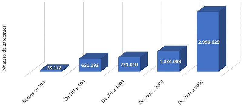 En una visión cuantitativa, existen en España 6.818 municipios de menos de 5.000 habitantes, 83,85 % del total de los municipios, en los que habitan 5.471.092 personas, un 11,54 % de la población total de España43, caracterizados en su mayoría por unas características demográficas negativas. Siendo en el umbral entre 2.000 a 5.000 habitantes donde se concentra la mayor parte de esta población.