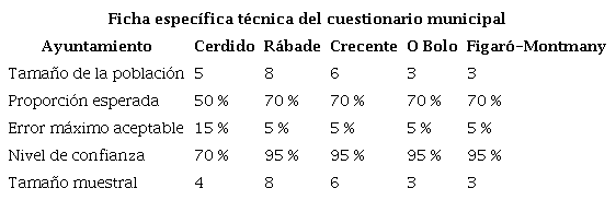 En cuanto al análisis estadístico de los datos, se procedió a configurar la ficha técnica del muestreo general y en particular para cada ayuntamiento. Se trata de una muestra no probabilística, dado que la elección de los encuestados no dependió de la probabilidad, ni es fruto de un procedimiento automático, sino que dependió de la decisión de una persona en función de las características del puesto de trabajo que desempeñan y su vinculación a los principios de gobierno abierto. Según Hernández, Fernández y Baptista (2007, p. 262), este tipo de muestra «ofrece una gran riqueza para la recolección de datos y el análisis de los datos».