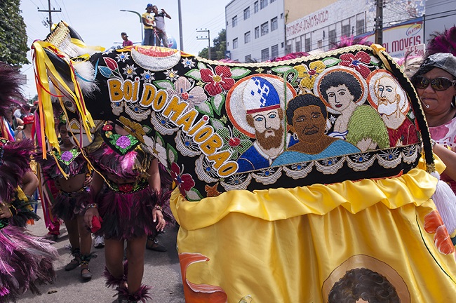 No ano anterior ao dessa foto, a mãe do dono (amo) desse boi fotografado havia falecido. Ele resolveu homenageá-la, incluindo seu rosto entre o dos santos homenageados no ciclo junino do Maranhão: São João Batista, São Pedro e São Marçal. Desse modo, e talvez sem saber disso, o amo desse boi expressou no couro bordado uma das crenças propostas no Credo Católico, a Comunhão dos Santos. De fato, a “canonização” de alguém querido ou respeitado, antes de um veredito oficial da Igreja, é uma das práticas mais comuns da Religião Material e tem como exponenciais exemplos São Benedito, que embora tivesse devotos desde o século XVII, só foi canonizado no início do século XIX, e Padre Cícero, reconhecido como santo em grande parte do nordeste brasileiro, mas não canonizado nem beatificado.