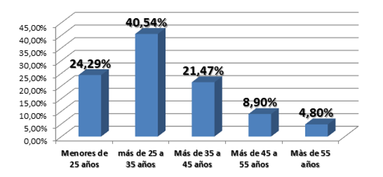Respecto a los aspectos demográficos, el 62,48% eran hombres y el 37,52% mujeres; 24,15% tenían edades inferiores a 25 años, 39,97% entre 25 y 35 años, 21,75% entre 35 y 45 años, 9,18% entre 45 y 55 años y el 4,94% restante tenía más de 55 años. Al considerar el estado civil, el 62,15% eran solteros; 24,86%, casados; 10,22%, convivientes (concubinos); 1,93%, divorciados y 0,83%, viudos.