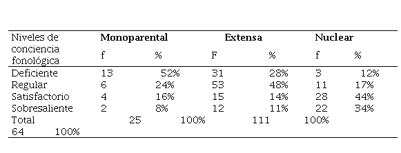 Palabras clave: conciencia fonológica, estructura familiar, monoparental, extensiva y nuclear.