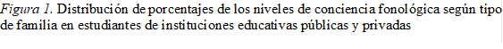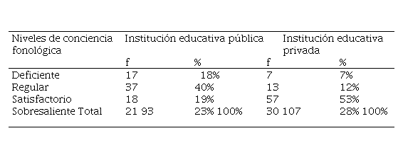 Niveles de conciencia fonológica según tipo de instituciones educativas