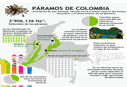 Para Del Llano (2010) el páramo es un ecosistema donde elementos como la vegetación, el suelo y subsuelo, han desarrollado un gran potencial para interceptar, almacenar y regular el agua; la importancia de este ecosistema radica fundamentalmente entonces, en su capacidad para interceptar y almacenar agua, y regular los flujos hídricos superficiales y subterráneos. De otra parte, los páramos colombianos albergan una rica flora endémica y prestan múltiples servicios ambientales principalmente como cuencas abastecedoras de agua para consumo, actividades productivas e hidroenergéticas, así como áreas de influencia de los principales embalses, represas y estrellas hidrográficas.