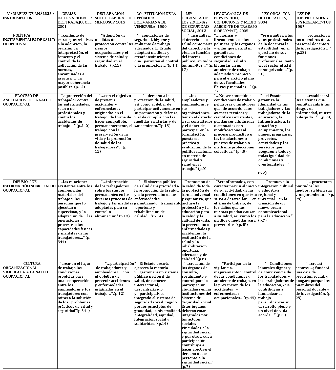 La revisión bibliográfica realizada a las distintas normativas relacionadas con la función del docente universitario y la salud ocupacional, se analizan a través de las siguientes variables emergentes: