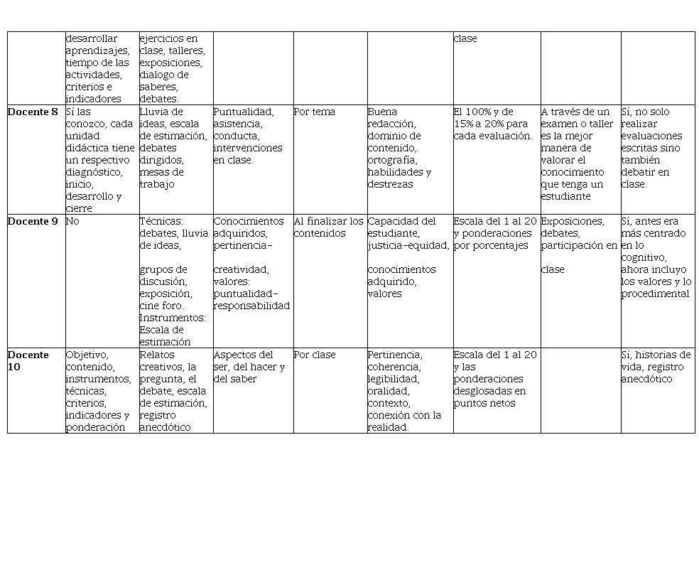 Por último, respecto a la pregunta N° 8, sobre la variación en el uso de las técnicas de evaluación, se observa un nivel alto en el 50% de los docentes que manifestó sí haber realizado alguna variación en el uso de alguna de las técnicas, mientras que el otro 50% dijo no haber realizado ninguna variación. Esto indica que los docentes no consideran importante la formación y actualización docente como aspecto fundamental para adquirir herramientas pedagógicas que contribuyan a evaluar de forma más objetiva los procesos de aprendizaje en los estudiantes. Igualmente refleja la importancia que conceden los docentes en los estudios relacionados al área de trabajo en detrimento con la formación docente.