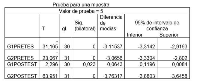 Los resultados evidencian que existió modificación en G1 al momento de aplicar pos prueba, lo cual, implica modificación en el conocimiento de la muestra poblacional en comparación con G2 que no se recibió la capacitación, por lo tanto, se determina que el programa de capacitación aplicado, fue efectivo en la población estudiada.
