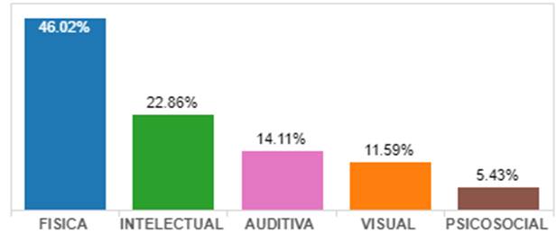 La discapacidad auditiva representa el 14,11% de la población discapacitada, esto en cierto modo es positivo por no ser un segmento proporcional, lo cual brinda oportunidad de formar a los servidores públicos progresivamente, así puedan establecer una atención al cliente favorable, siendo esto un indicador que es posible crecer socialmente en razón de establecer un principio de reciprocidad de empatía entre las personas, así se genera una sociedad basada en el respeto mutuo y equidad social, generándose una imagen positiva del servidor público en prestación de servicios al cliente.