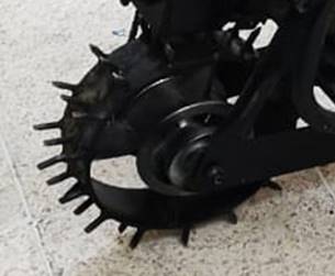 En este tipo de máquina, la estructura se apoya sobre una rueda motriz. La rueda se desplaza por el terreno, por lo cual el ancho es limitado tan solo 100mm.