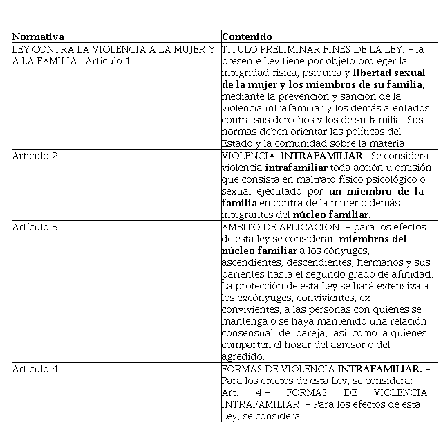 Se establecen leyes que vincular la vida familiar y otros hechos que vulneran mediante hechos de violencia la tranquilidad del desarrollo saludable intrafamiliar.