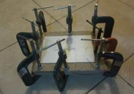 Una vez etiquetadas se procede a presionarlas durante 8 horas mediante el uso de dos retazos de madera y pinzas mecánicas, hasta lograr la eliminación de los orificios internos sin dañar la superficie de la fibra como se muestra en la figura 3.