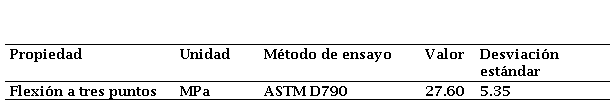 Además, se realizó el ensayo de flexión a tres puntos de acuerdo a la norma especificada.