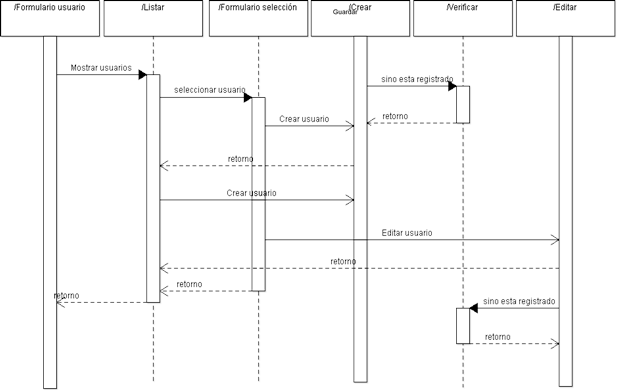 En este diagrama se registra la iteración de la persona encargada de ingresar la información o usuario y el sistema de ¿cómo responde internamente? además de detallar los diferentes estados (crear, verificar, editar) a través del tiempo.