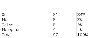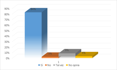 Un 84% si cree que los emprendimientos o negocios familiares puedan ayudar al desempleo, pues la mayoría son formados por familias y todos laboran en el mismo y no tienen que salir a buscar un empleo en otro lado, aun hayan adquirido alguna formación universitaria, pues planean poner todos sus conocimientos adquiridos en su empresa familiar, mientras que un 3% opina que no ayudarían a ninguna solución, el 9% no sabe, y un 4% no opina.