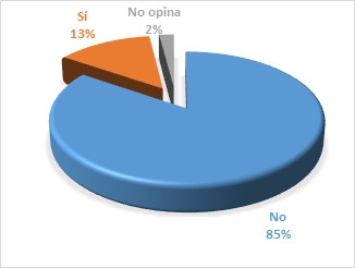 El 85% de los encuestados aseguran que no se reconocieron los derechos de los trabajadores al ser despedidos, mientras que un 13% opinan que sí se han reconocido, y un 2% no opina.