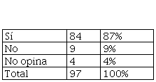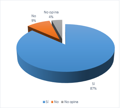 El 87 de los encuestados indica que si tienen alguna habilidad propia y que les gustaría explotarla y de esta manera poder de alguna manera hacerle frente al desempleo que ha golpeado duramente a las familias, un 9% opina que no tienen alguna habilidad y un 4% no opina.