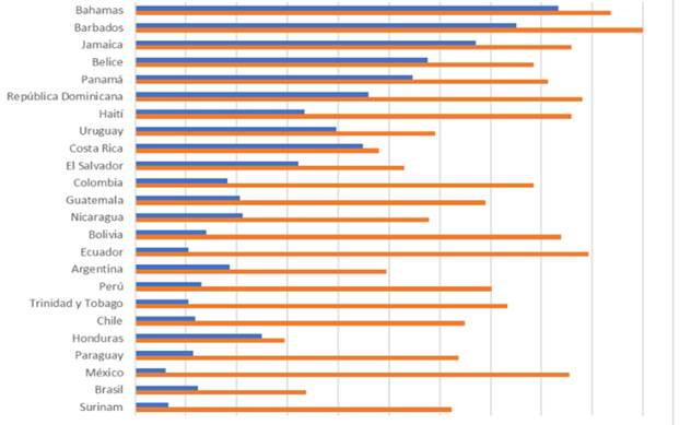 A partir de lo descrito, aunado a la pandemia por COVID-19, la economía exterior en la región se desaceleró hasta un 45,1% en promedio, de acuerdo a lo prescrito por (BID, 2021), esto implica que la economía en el último año ha sido golpeada fuertemente, lo que podría denominarse como un antes y después de la pandemia. En el caso del Perú, la última medición lo ubicaba en el puesto 17 de la región, en este punto de la historia, es incierto el puesto donde se ubica, se hace necesario estudiar nuevas medidas que contribuyan al despegue económico exterior después de la pandemia.