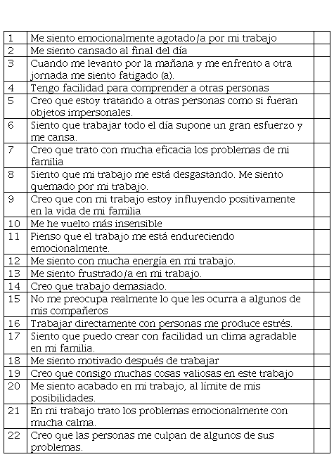 Para recopilar la información a los familiares, se aplicó una encuesta online y cuestionario Maslach Burnout Inventory (MBI) de 22 ítems, mediante los cuales, se midió 3 factores relacionados al síndrome: