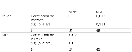 La educación inclusiva (InEdc) y los mecanismos de integración del alumnado (MIA), tiene como resultado correlacional de 0,017, según Hernández, Fernández, Baptista (2010), corresponde a una correlación positiva muy débil, lo cual implica que existe inclusión educativa pero la misma debe ser profundizada con la finalidad de incrementar su efectividad en favor de los alumnos en su proceso educativo. Así mismo, al no existir significancia bilateral significativa, se rechaza la hipótesis afirmativa y se acepta la nula, por lo cual se requiere promover esfuerzos que consoliden la inclusión educativa en la unidad educacional objeto de investigación. Siendo uno de estos esfuerzos, la formación integral de los docentes con la finalidad de que conozcan y aborden diversas estrategias para estimular la integración asertiva de los estudiantes en perspectiva de una educación inclusiva y de calidad (Silva, 2018).