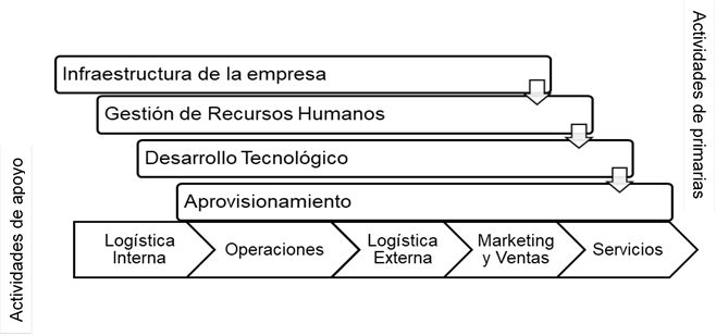 Una cadena de valor es un conjunto de actividades que una organización lleva a cabo para crear valor para sus clientes, la forma en que se realizan las actividades de la cadena de valor determina los costos y afecta las ganancias, por lo que esta herramienta puede ayudar a comprender las fuentes de valor para la organización, además describe las actividades dentro y alrededor de la empresa, y las relaciona con un análisis de la fuerza competitiva, por lo tanto, se evalúa qué valor agrega cada actividad particular. A continuación en la Figura 4 se establece el esquema de la propuesta de la presente investigación: