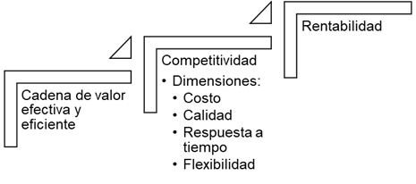 Prosiguiendo con lo planteado, ( Presutti & Mawhinney, 2013),afirman que la ventaja competitiva se construye proporcionando valor para los clientes y se manifiesta cuando los costos se reducen y el rendimiento aumenta, la correcta implementación de la cadena de valor, conlleva a la competitividad del mercado, la ventaja competitiva obtenida mediante la correcta ejecución de los procesos determina varios factores como el costo, la calidad, la respuesta a tiempo y flexibilidad, la cual conlleva a la rentabilidad de la organización.
