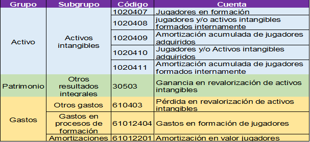 Clasificación de los costos: es importante que las entidades reconozcan y clasifiquen adecuadamente los desembolsos realizados en sus jugadores, para ello, se debe tener presente las variables mencionadas en el punto anterior.