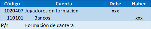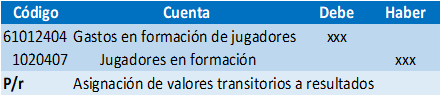 Por otra parte, cuando no se llegase a habilitar a ningún jugador, estos valores serán considerados como una pérdida del ejercicio. La cuenta de acumulación de estos valores, se denominaría como una cuenta transitoria de costos de formación, la cual al finalizar el período debe ser ajustada a la cuenta correspondiente, ya sea enviando sus valores al resultado del período o de ser el caso al activo, por lo que no debe reflejarse (costos de formación) en los estados financieros.