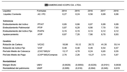 Los índices de rentabilidad miden la efectividad de la administración de la empresa para gestionar los costos, gastos y los niveles de rentabilidad, la empresa presento pérdidas para los años 2014 al 2016, dando como resultado un margen bruto negativo, a diferencia del año 2018 la empresa obtiene utilidades por $ 2465,82 dólares y un margen de rentabilidad de 0,0038.
