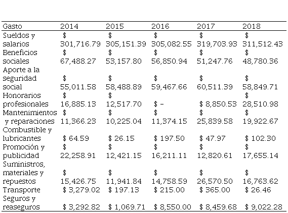 Los ingresos de la institución son calculados al valor razonable de la contraprestación del servicio recibido o por recibir, tomando en cuenta el importe estimado de cualquier descuento, la tabla 9 muestra los ingresos ordinarios (pensiones) de la institución siendo el año 2016 en el que se obtuvo la menor cantidad de ingresos por un monto de $505,444.00, mientras que, en el año 2018 se incrementaron a $602,224.00. Con respecto a los gastos acumulados la empresa conforma este rubro con las partidas detalladas en la tabla 3.