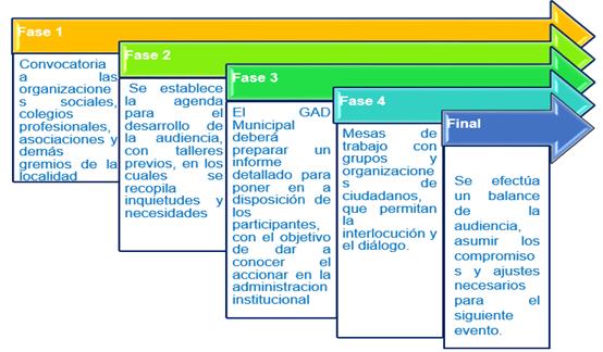 La figura 10 muestra el proceso a seguir para el desarrollo del evento propuesto que permitirá al GAD Municipal de Cuenca, no solo cumplir con disposiciones legales sino, con el deber y la responsabilidad que tiene la entidad con los ciudadanos, que son la razón misma de su existencia.