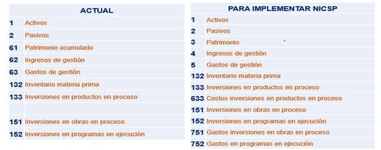Parte de la implementación de las NICSP será la modificación del Plan General de Cuentas, se propone la aplicación de las cuentas que se plasman en la figura 4.