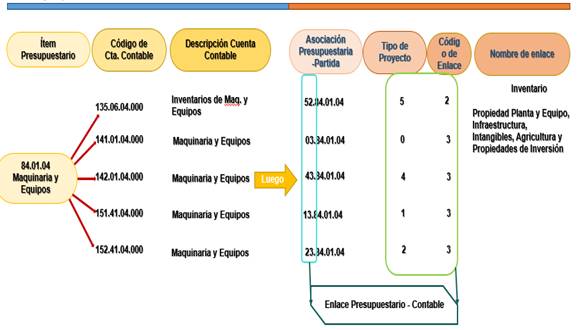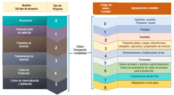 Cabe aclarar además que, con la aparición de los gastos de inversión en proyectos y programas, se utilizará el código de enlace presupuestario contable que se explica en la f igura 5: