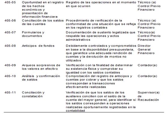 Componente 4. ? Fortalecimiento de tareas de planeación, ejecución, control, evaluación y fiscalización:todas las actividades inmersas en la producción de la información financiera, tendrán mayor fuerza, si para su ejecución se respaldan en la normativa que el ente de control del Estado ecuatoriano ha emitido para este propósito, lo que permitirá cumplir con las tareas de forma efectiva y eficiente y que además sus resultados brindarán seguridad razonable y estarán alineadas con los objetivos de su elaboración.