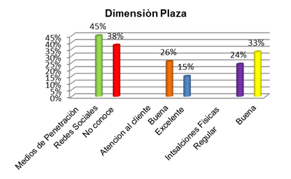 Esta dimensión que se presenta en la Figura 2 está compuesta por 3 interrogantes, la forma de penetración de mercado que el negocio tuvo para llegar a los clientes, la calidad de atención que brinda la empresa y condiciones de las instalaciones físicas de la misma.