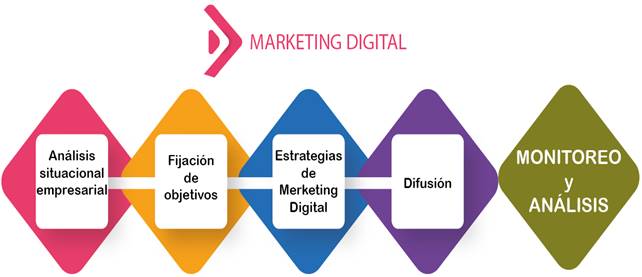A continuación, en la figura 5 se observa la descripción de los pasos que integran un plan de marketing que sirve de guía para estudiar el entorno, la situación actual de la empresa así como los objetivos a alcanzar mediante la aplicación de estrategias digitales que mediante la difusión de estas mejoran la rentabilidad de una organización.