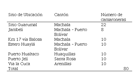 La población objeto de estudio forma parte del grupo de empresas dedicadas a la industria del camarón en un total de 80, sectorizadas en los cantones de Machala, Santa Rosa, Puerto Bolívar, Arenillas y Huaquillas, ver tabla 4.