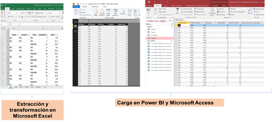 El proceso de extracción, transformación se realiza en Microsoft Excel con el propósito de estandarizar la información, es decir que los datos deben ser guardados con coherencia de formato, cambio de unidad, operaciones, etc.; por lo general las transacciones en bruto presentan datos que no interesan o son duplicados, a estos datos se realizar una limpieza o son filtrado, por último, se procede a cargar la base de datos consolidada en los dos programas Power BI y Access.