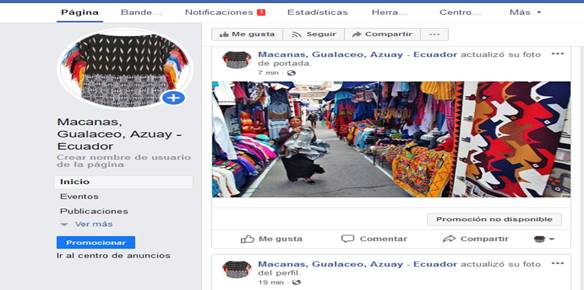 Se inicia el proceso de comercialización de un producto ofertado como en este caso son las Macanas elaboradas en el cantón Gualaceo, estableciendo la marca para promocionarla en las diferentes redes sociales tales como Twitter, Facebook e Instagram. Como se observa en las figuras 2, 3, 4, 5 y 6