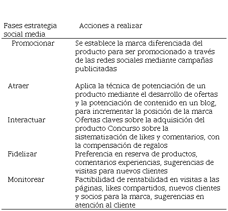 En la tabla 7, se presentan las acciones que se establecen en las fases de la estrategia social media.